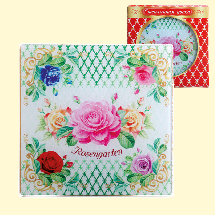 Multifunktionales Glasbrett Rosengarten aus gehärtetem Glas, 20 x 20 cm