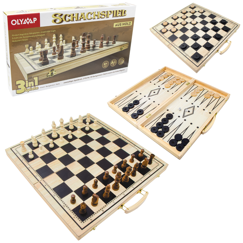 Schach-, Damen- & Backgammonspiel / Nardy, massives Holz, Spielbrett 40 х 40 cm