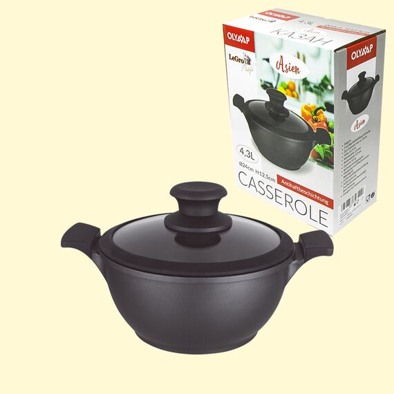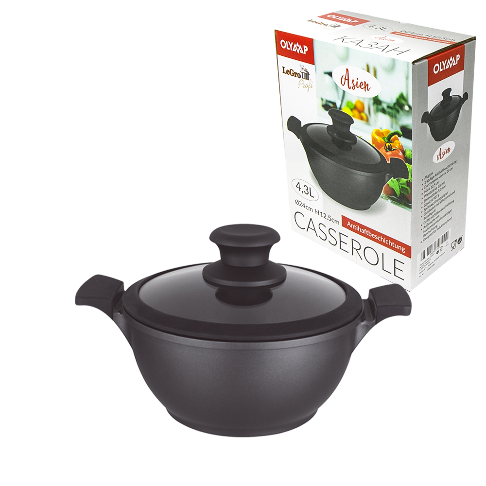 Kessel mit hitzebeständigem Glasdeckel ist auf der Grundlage der modernsten Technologien mit hochwertigen Materialien hergestellt. Die spezielle zweischichtige Antihaftbeschichtung ermöglicht ein einfaches Kochen ohne Öl und Fett, was ihn noch nützlicher macht.