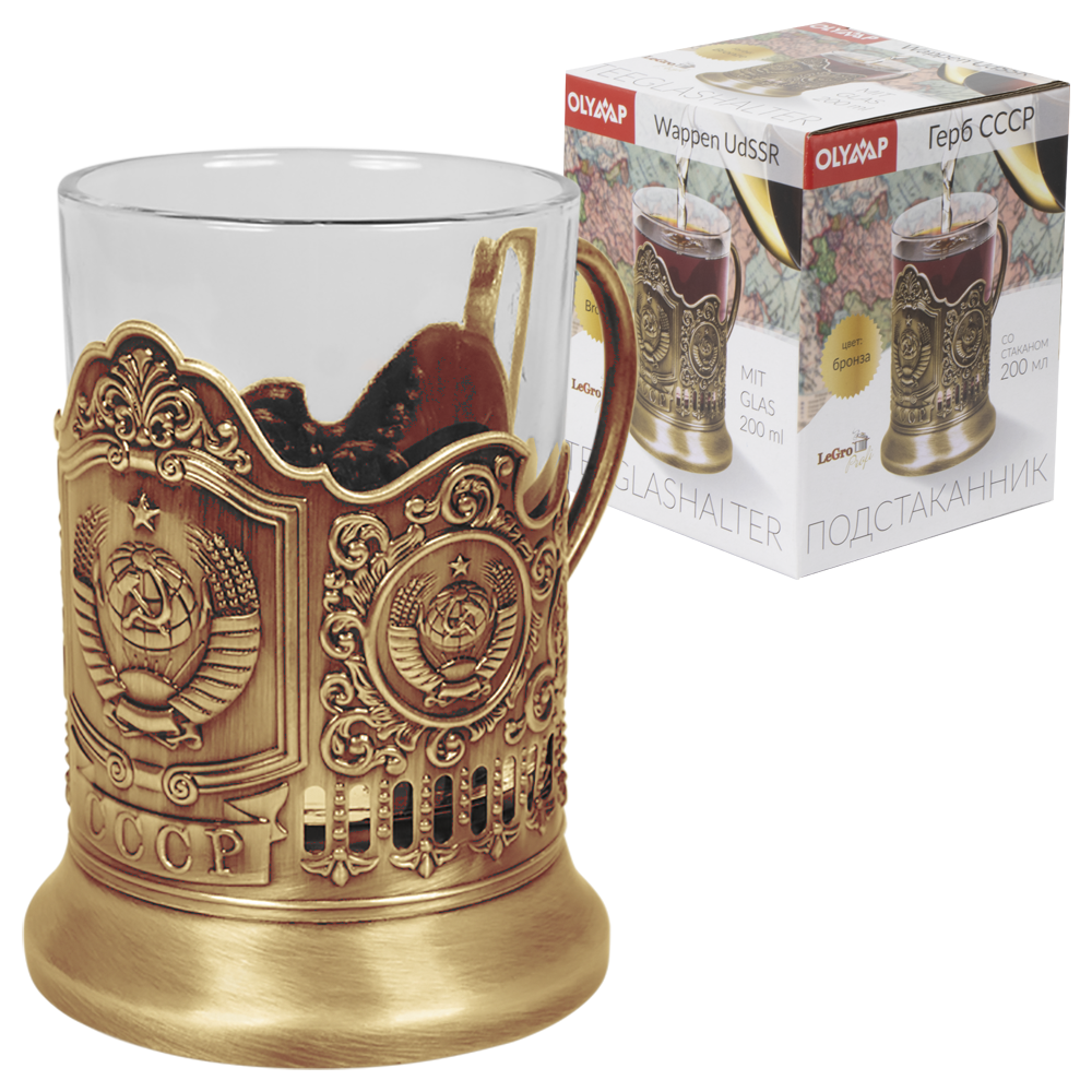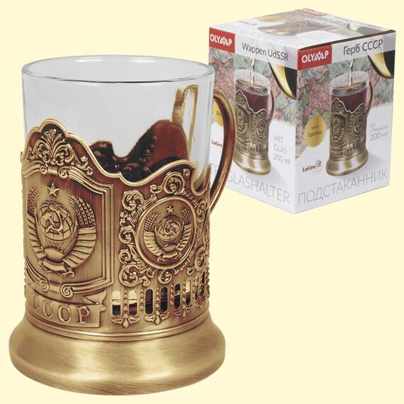 Teeglashalter in Bronze Wappen UdSSR mit Teeglas, 200 ml
