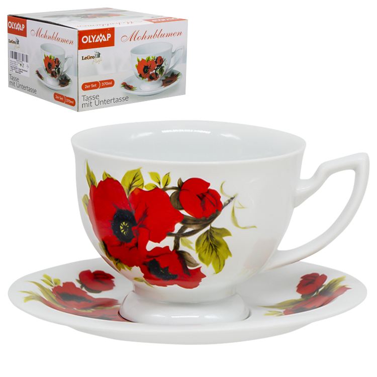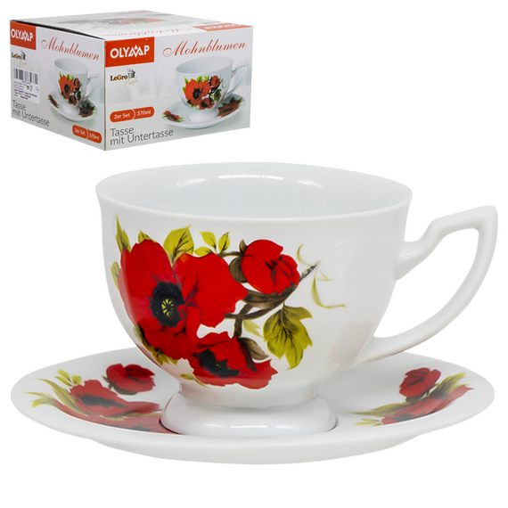 OLYMP Teeset Kaiserlich mit Design Mohnblumen, 1 Tasse 370 ml + 1 Untertasse