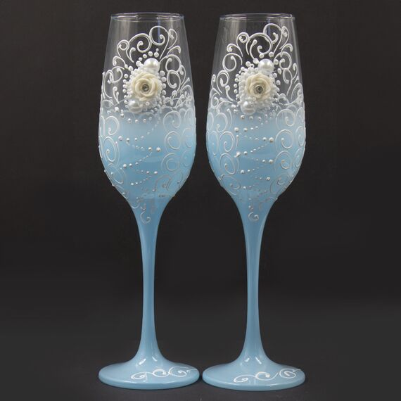 Geschenkset 2 Hochzeitsgläser, blau, 23,5 cm