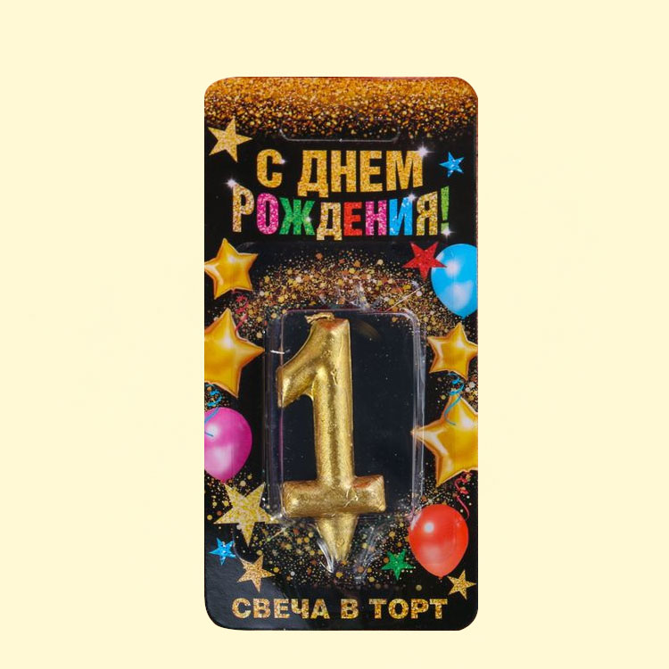 Tortenkerze - Zahl 1, gold, 3 cm × 0,8 cm × 6 cm