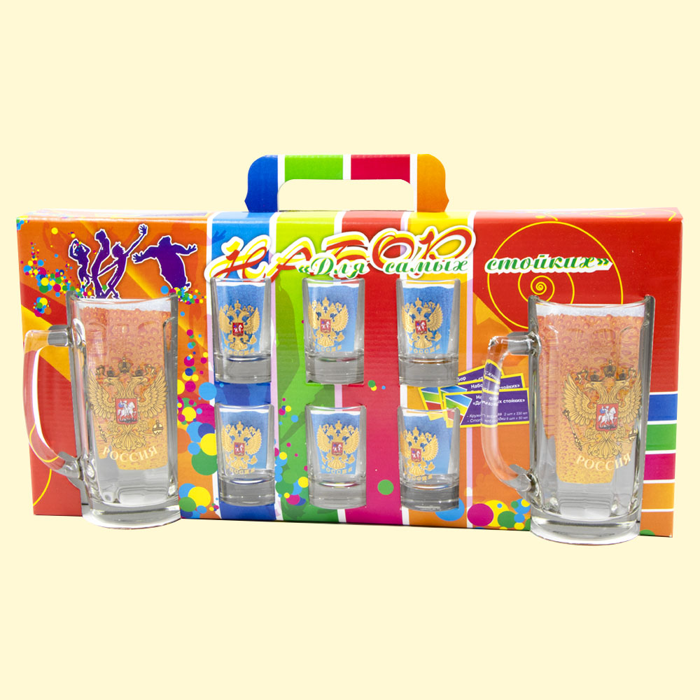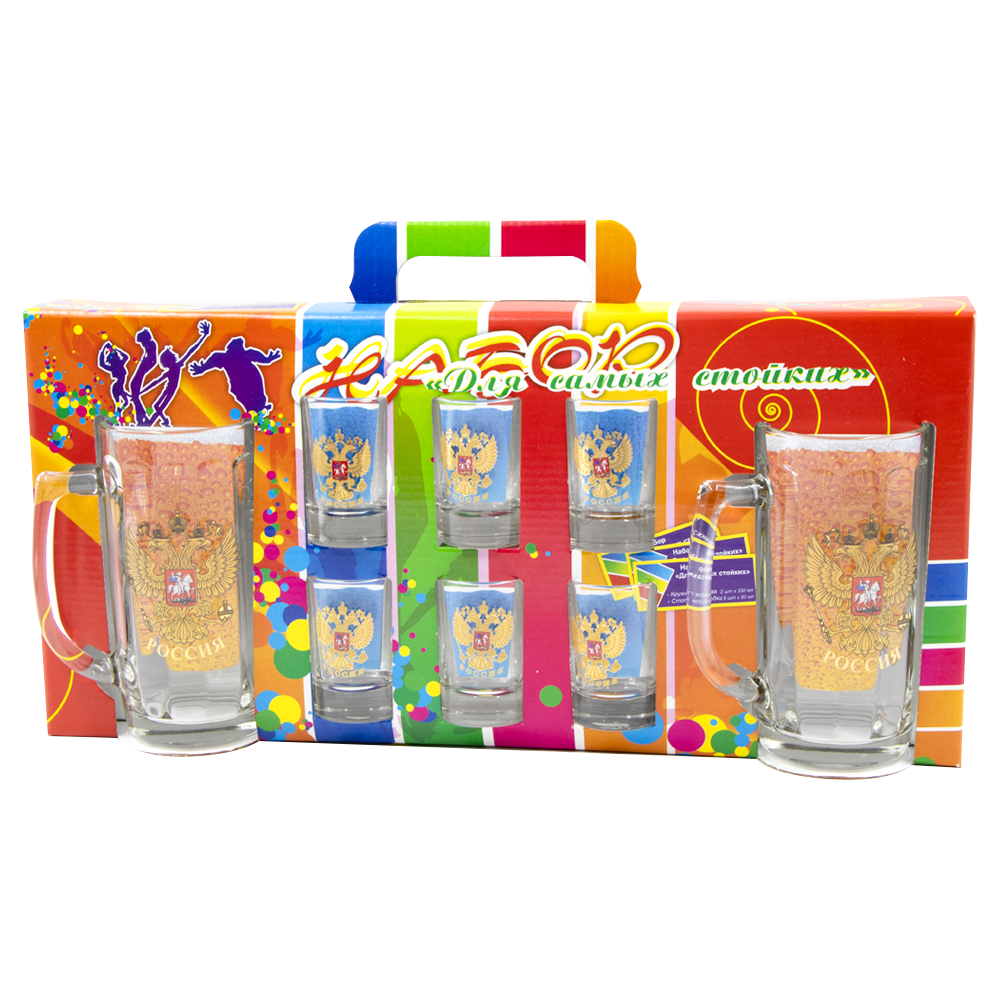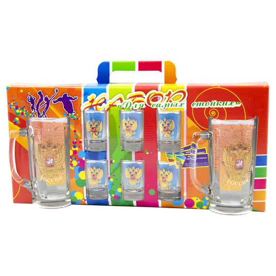 Gläser-Set "Wappen Russland" 2 Biergläser je 0,33 ml und 6 Gläser je 50 ml