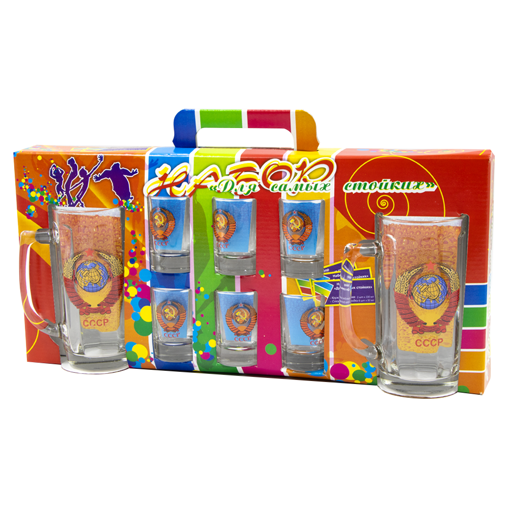 Gläser-Set Wappen UdSSR 2 Biergläser je 0,33 ml und 6 Gläser je 50 ml
