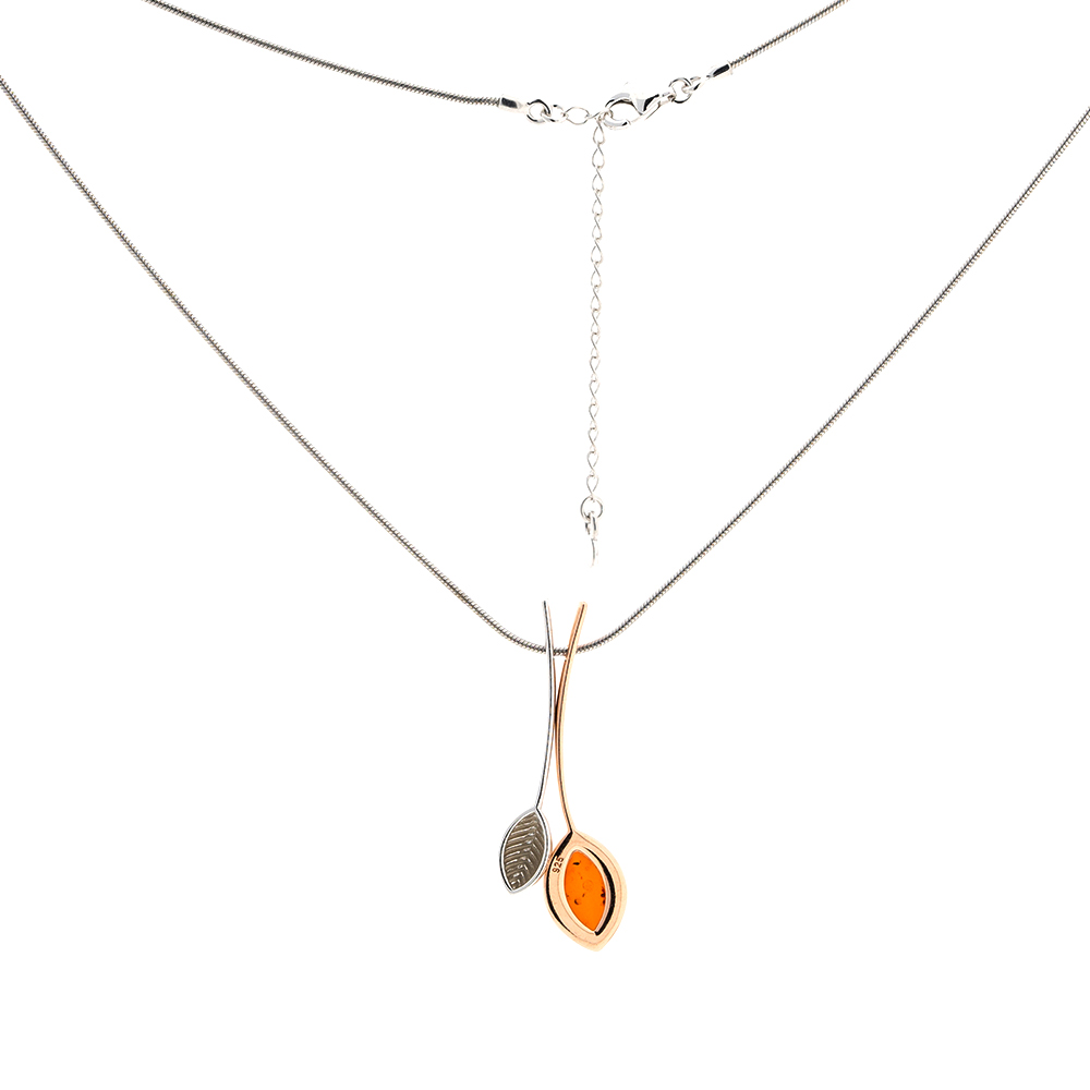 Collier vergoldet aus 925 Silber mit Bernstein-Anhänger (Länge 45+5 cm)