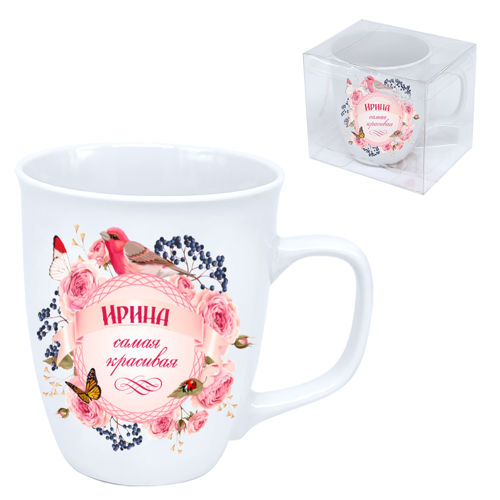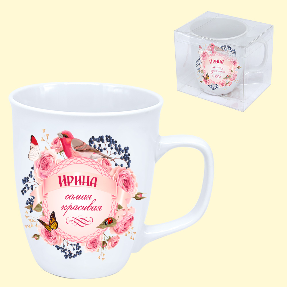 Der Becher ist aus umweltfreundlichem, hochwertigem Porzellan mit feinem Glanz gefertigt. Er hat ein attraktives thematisches Design in Form eines Schriftzuges auf russisch "Irina ist die Allerschönste".Dieser stylische Becher ist ideal für den täglichen Bedarf - ob im Büro oder Zuhause.