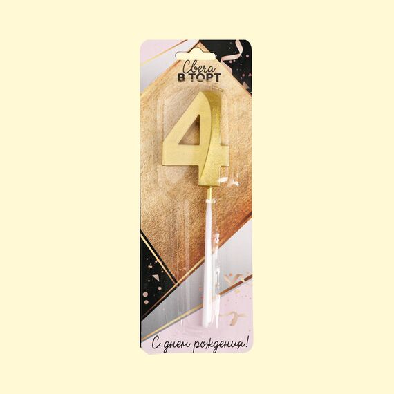 Tortenkerze Nummer 4, gold, 3,5 х 12 cm *