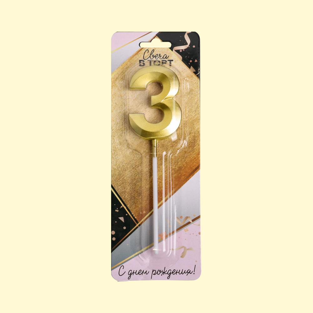 Tortenkerze Nummer 3, gold, 3,5 х 12 cm *