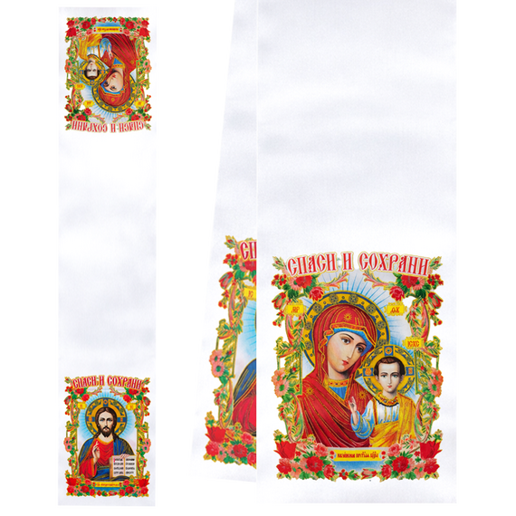 Ruschnik mit Ikonen Образ Пресвятой Богородицы и Господь Вседержитель, 120 x 24 cm