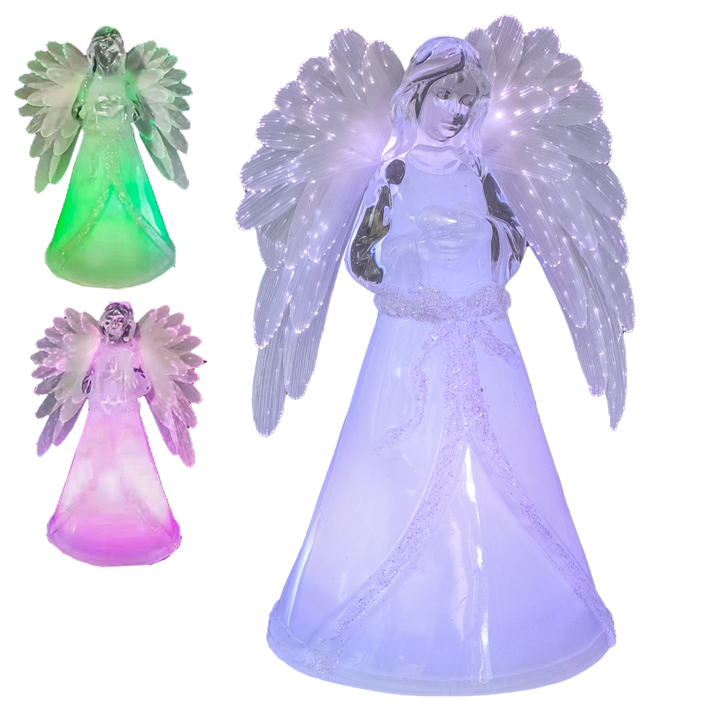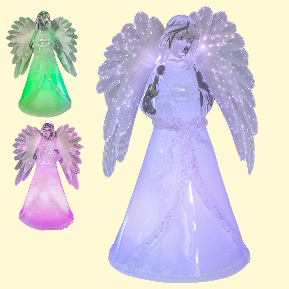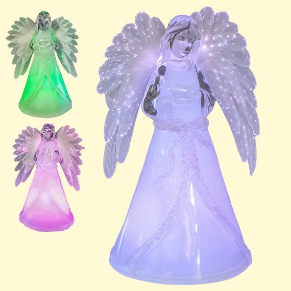 Deko - Figur Engel mit beleuchtenden Flügeln, aus Acryl, 17,5 cm