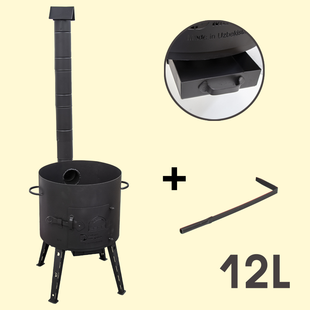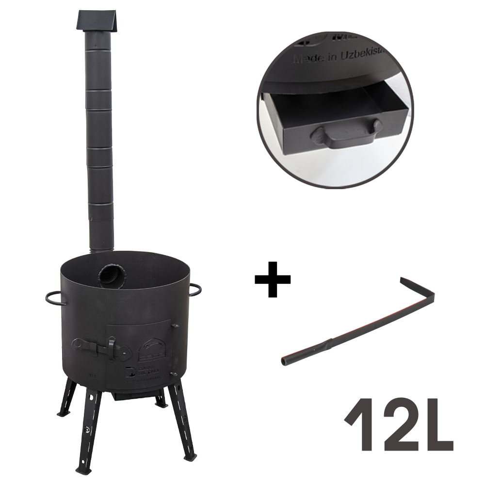 Pitcher mit zusammenklappbaren Schornstein ist für sichere und schnelle Outdoor-Kochen in einem Kessel, Camping Kessel mit maximalem Komfort konzipiert. Das Produkt ist ein Metall-Zylinder-Gehäuse, das abnehmbare Beine, Tür, Aschekasten, Schürhaken, 4-teiliges Rohr umfasst. Dank der optimalen Wandstärke (2 mm) ist die Möglichkeit einer Verformung der Produktwände ausgeschlossen. Die Ausstattung mit einem Schornsteinrohr sorgt für Komfort beim Betrieb. Der Rauch dieser Feuerstelle zieht in den Schornstein ab und gelangt nicht in die Augen und raucht nicht auf die Kleidung. Das Schornsteinrohr kann für den Transport abgenommen werden. Die hitzebeständige Beschichtung verhindert die Bildung von Rost und schützt vor Verschmutzung.