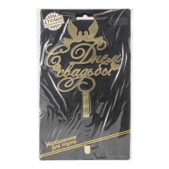 Tortendeko С Днём свадьбы, aus Karton in Gold, 23 × 13 cm