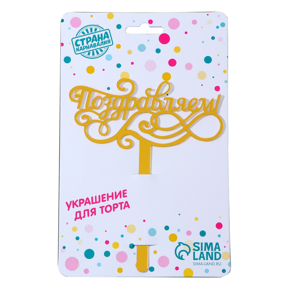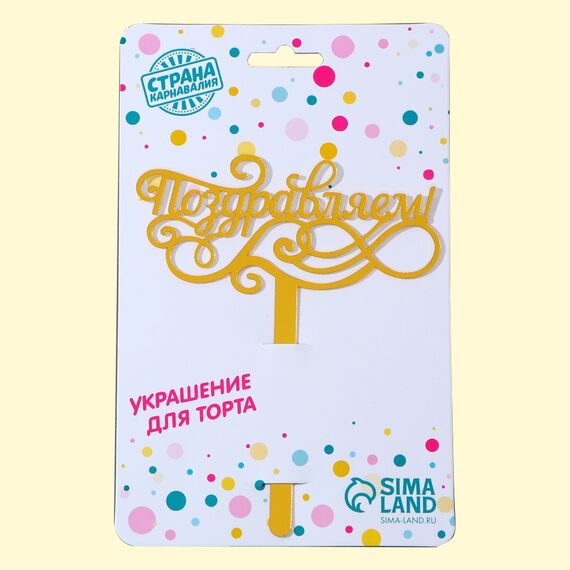 Tortendeko Поздравляем, aus Akryl in Gold, 13 cm