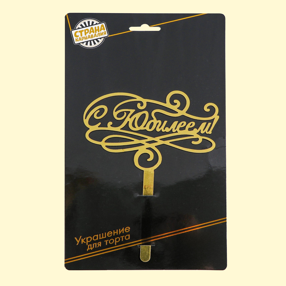 Tortendeko С юбилеем, aus Karton in Gold, 17,5 × 13 cm