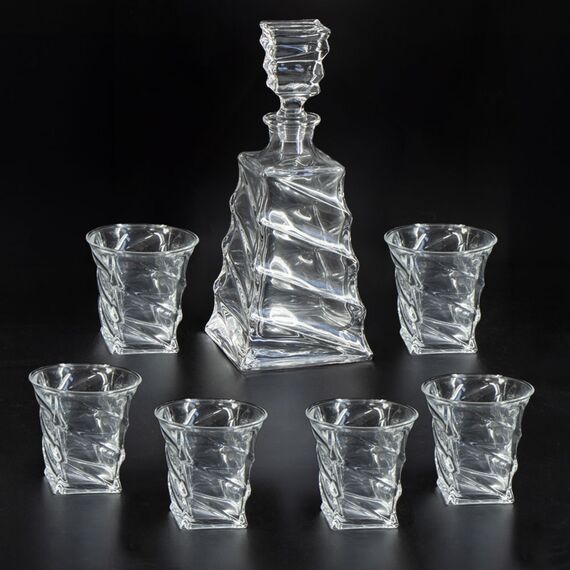 Whisky-Set Karaffe, 700 ml + 6 Whiskygläser, 220 ml