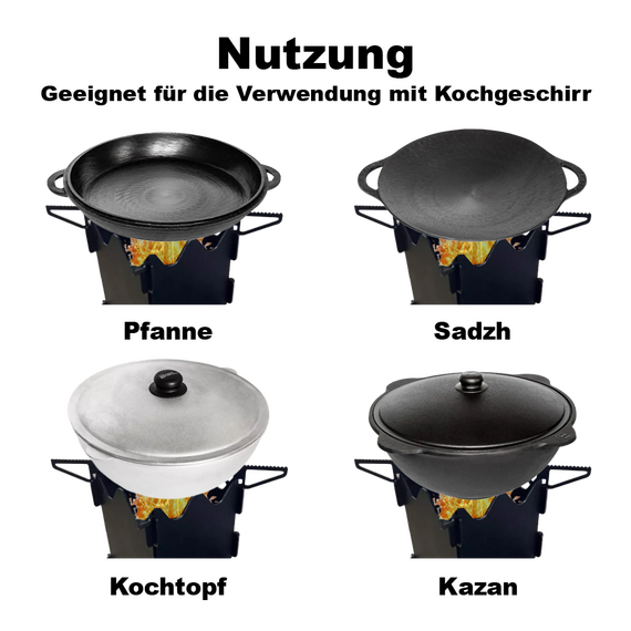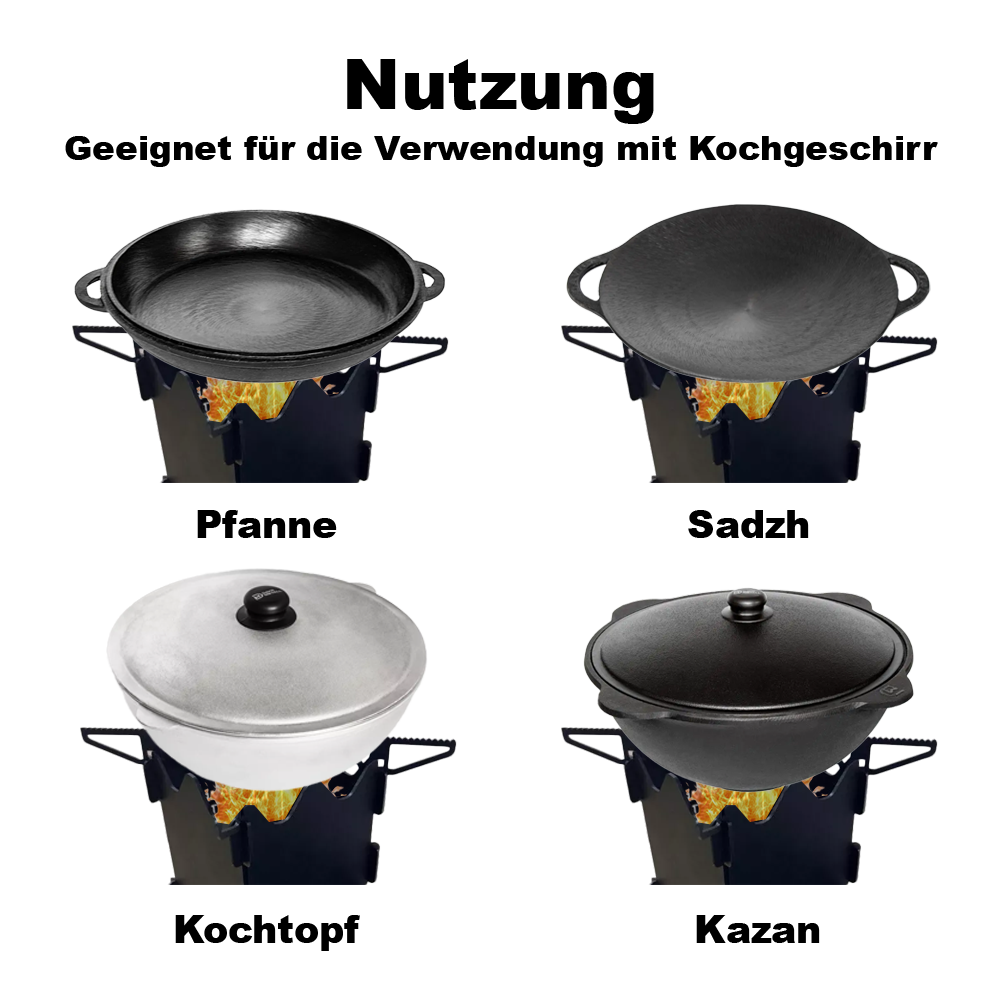 Die Raketen-Touristen-Kocher-Feuerstelle ist eine kompakte und effiziente Lösung zum Heizen und Kochen im Freien. Sie verbraucht wenig Brennstoff, bietet eine hohe Wärmeleistung und eignet sich für Kessel, Pfannen und Töpfe. Dank ihres speziellen Verbrennungssystems reduziert der Ofen die Rauchentwicklung und sorgt für langes Brennen. Der Kocher ist einfach zusammenzubauen und zu transportieren, und die hochwertigen Materialien garantieren eine lange Lebensdauer. Die perfekte Wahl für Camping, den Garten oder Ferienhäuser.