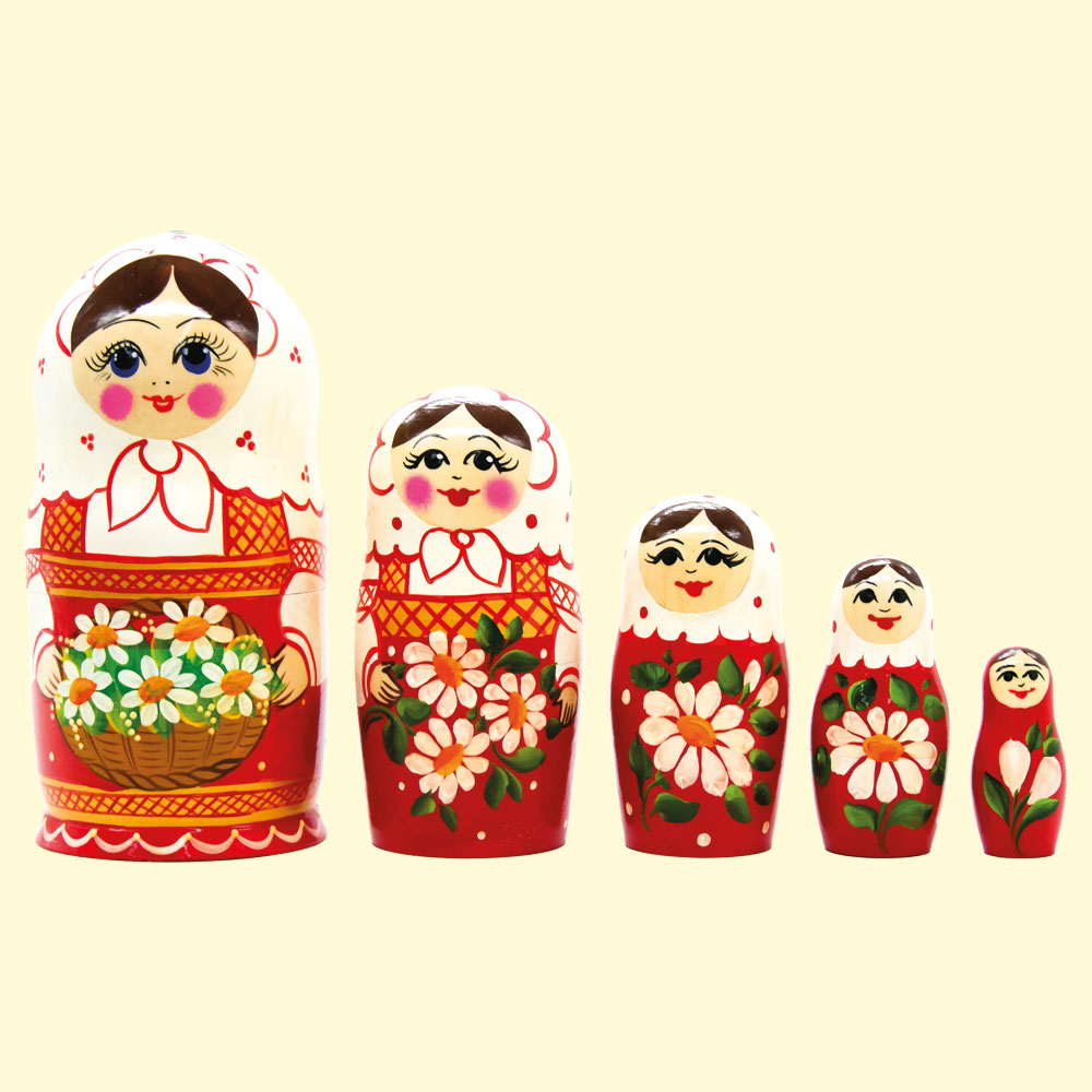Die Matroschka „Weißes Tuch“ (M5, 18 cm) ist ein hochwertiges Kunsthandwerk, gefertigt von erfahrenen Meistern des berühmten Betriebs in der Stadt Semjonow. Das Set besteht aus 5 ineinander verschachtelten Puppen. Die handgemalte Bemalung zeigt traditionelle Muster, wobei das weiße Kopftuch ein zentrales Motiv darstellt. Ein schönes Geschenk und ein Symbol russischer Volkskunst.