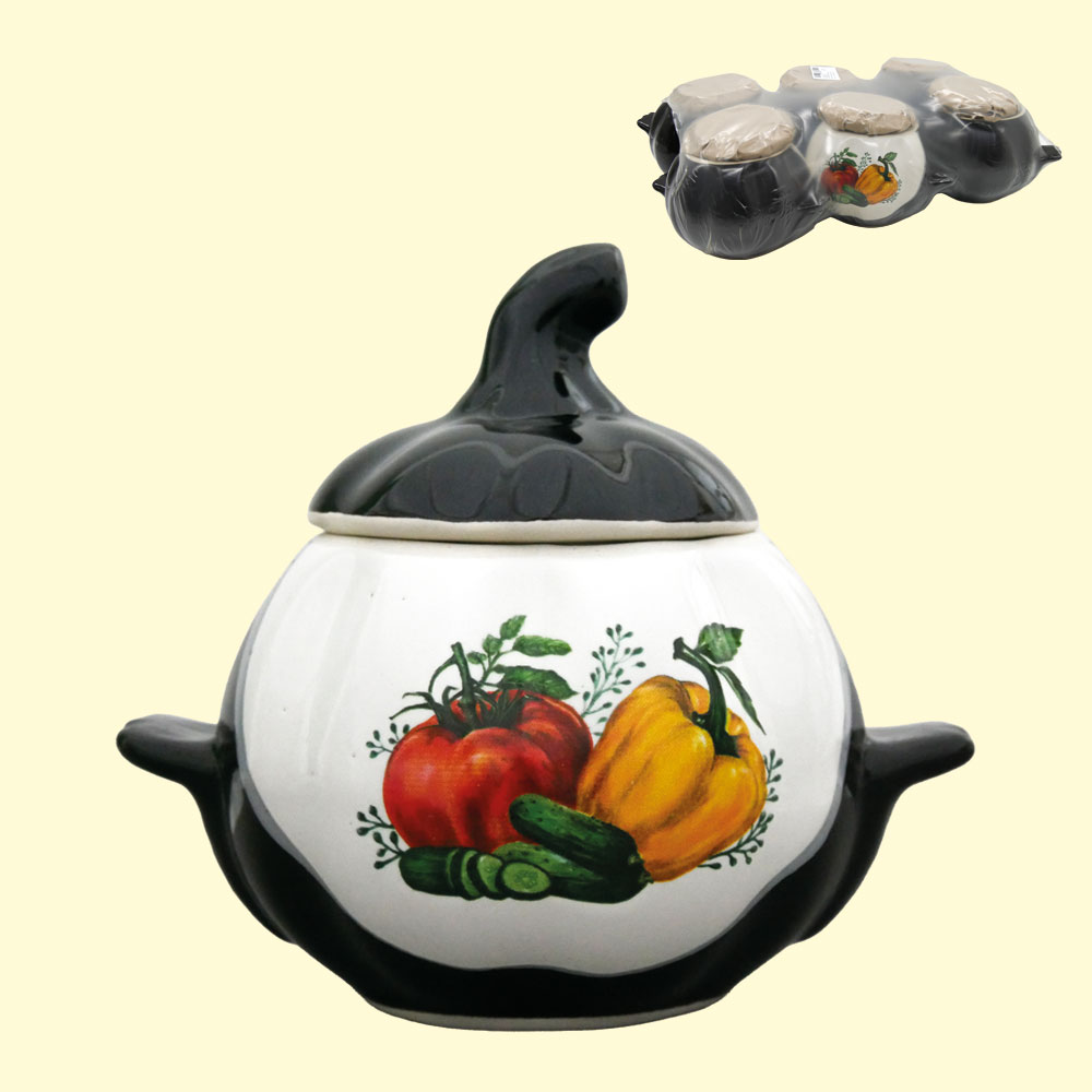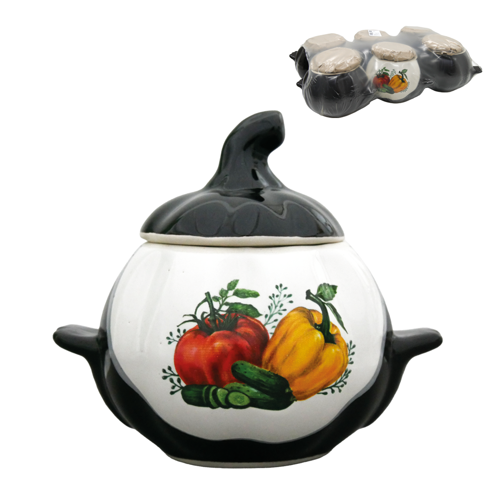 Backtopf Kürbis, weiß-braun mit Henkeln, 0,75 l, mit Gemüse-Dekor (Set mit 6 Töpfen)