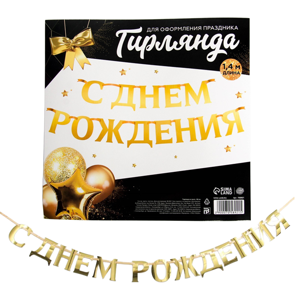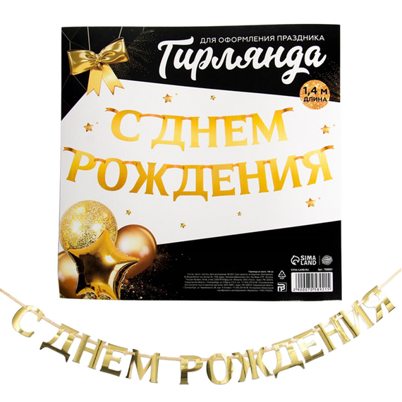 Girlande auf Band, Metallic С Днём рождения, gold, Länge 140 cm