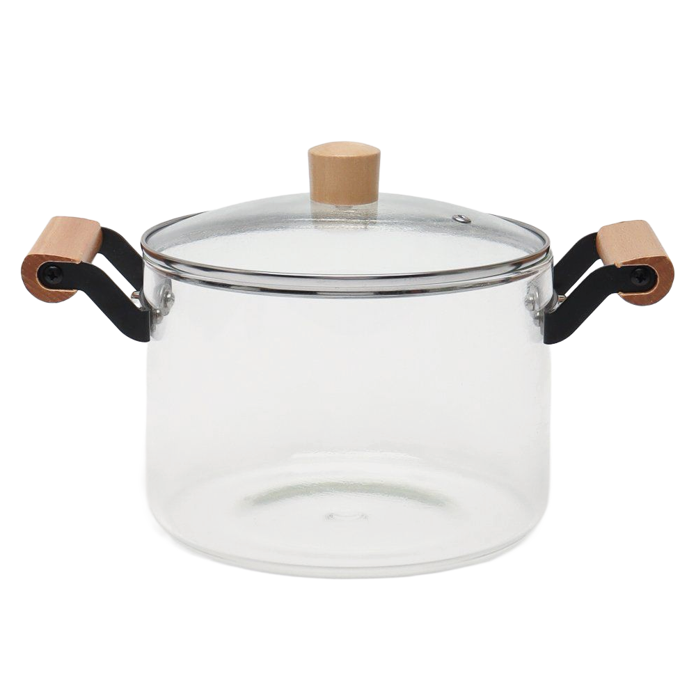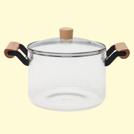 Glastopf 4,5 L aus hochwertigem Borosilikatglas, mit Glas- und Edelstahldeckel sowie Holzgriffen