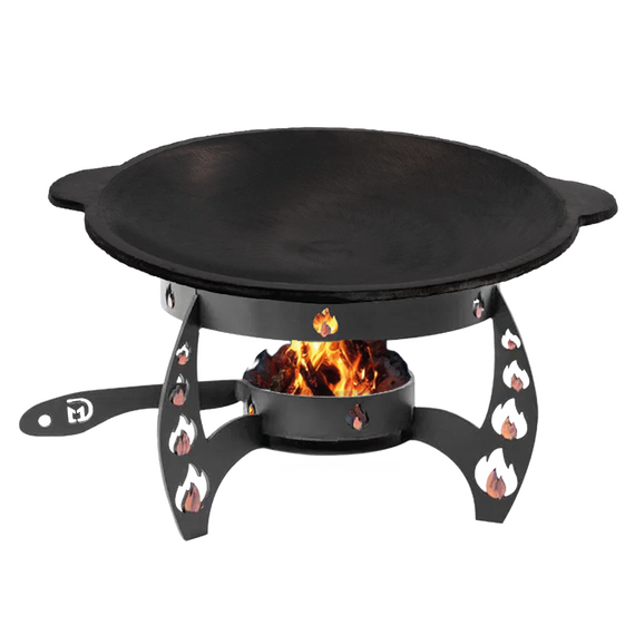Im Set enthalten ist eine Metallschale für Holzkohle, die hilft, das Gericht während des Essens warm und aromatisch zu halten.