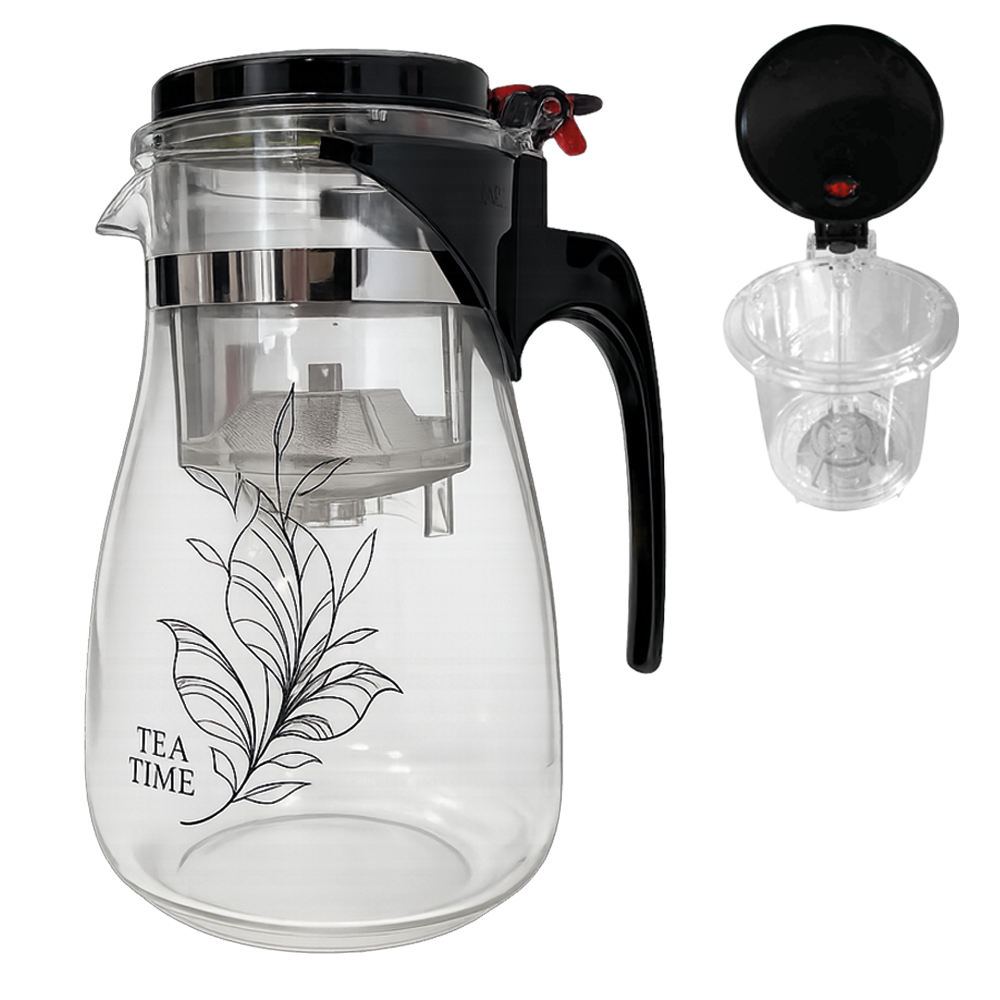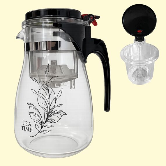 Die Teekanne besteht aus hitzebeständigem Glas, sodass Sie heißes Wasser sicher aufgießen und den Aufguss beobachten können. Der Knopf am Deckel erleichtert das Ausgießen, verhindert Verschütten und sorgt für komfortables Handling.