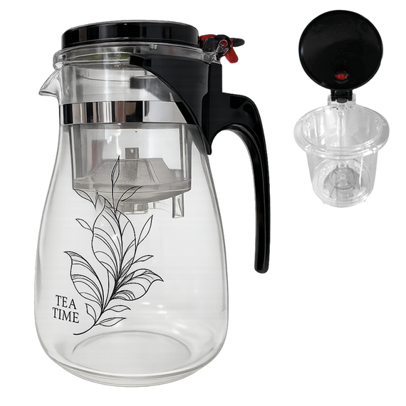 Glasteekanne mit Knopf für Gongfu-Aufguss (Gießmethode), 950 ml