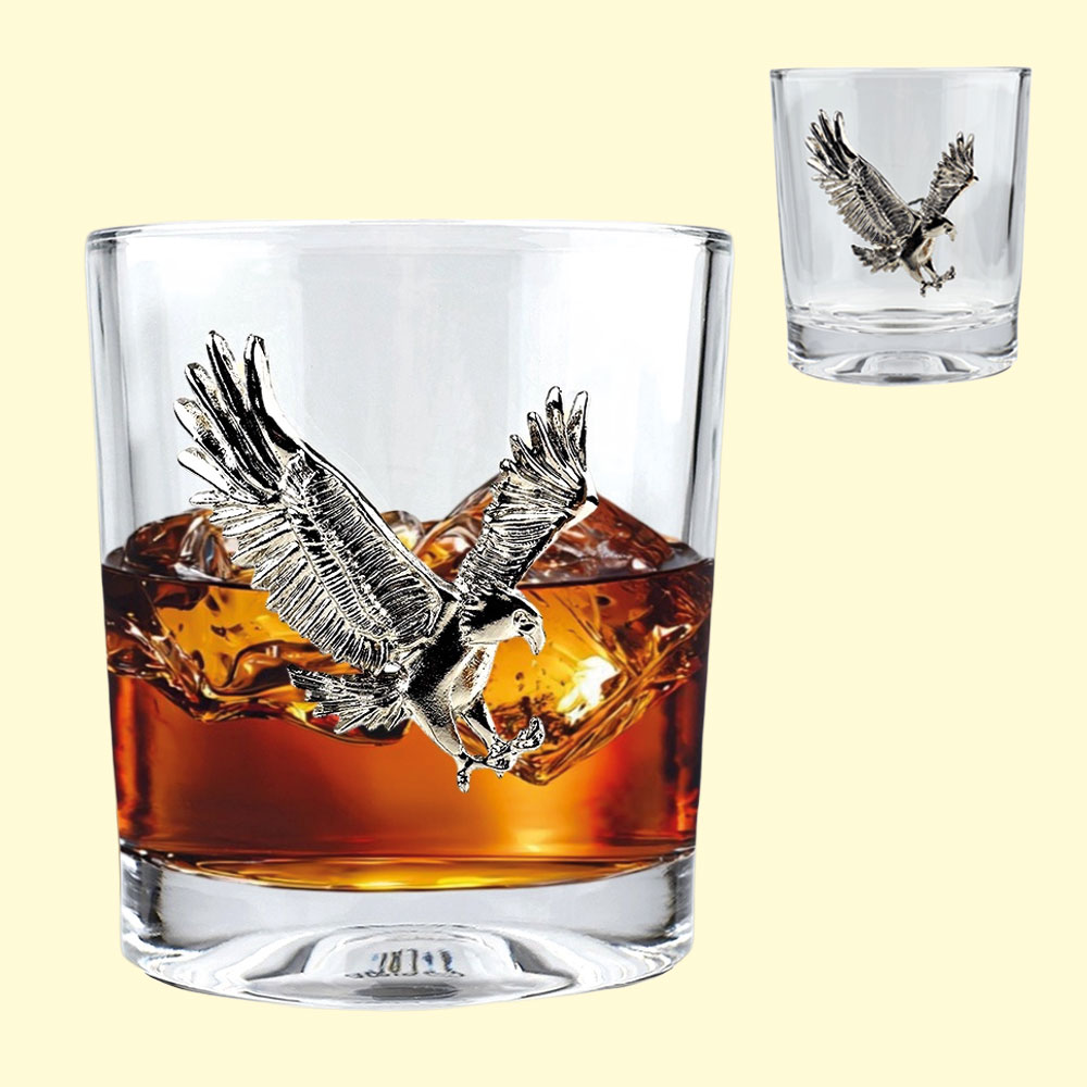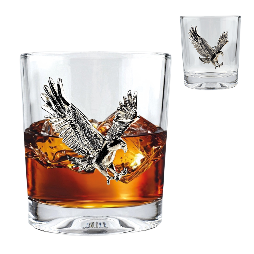 Elegantes Whiskyglas „Adler – Metall“ mit einem Fassungsvermögen von 230 ml – eine ausgezeichnete Wahl für Liebhaber von Spirituosen.