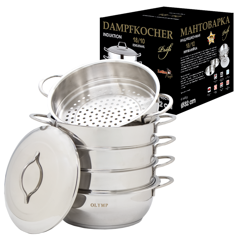 Dampfkocher 32 cm, 6 Tlg., Edelstahl 18/10, mit Metallgriffen *