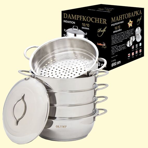 Essen, das für ein Paar zubereitet wird, nicht nur lecker, sondern auch sehr nützlich ist, weil behält fast alle nützlichen Eigenschaften von Produkten, und das ist für jede Person in allen Jahreszeiten notwendig. In mantovarke können Sie nicht nur Manti, sondern auch andere Gerichte und (abhängig von der Anzahl der Sektionen) bis zu vier Gerichte gleichzeitig kochen. Es kann auch als normale Pfanne verwendet werden. Gute Qualität und ein gutes Geschenk für Ihre Lieben.