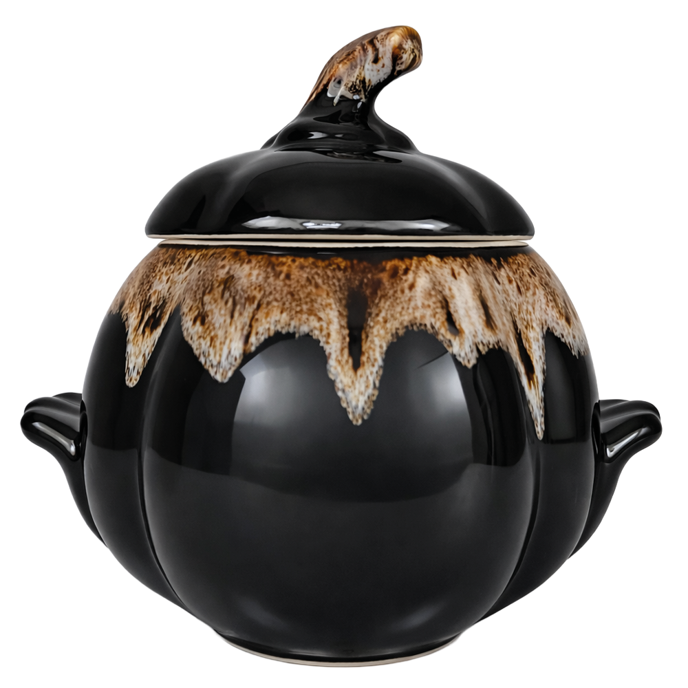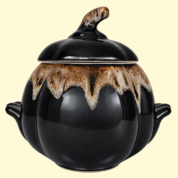 Suppenterrine Kürbis Braun mit Deckel und Griffen, Keramik, 2,4 L, zum Backen