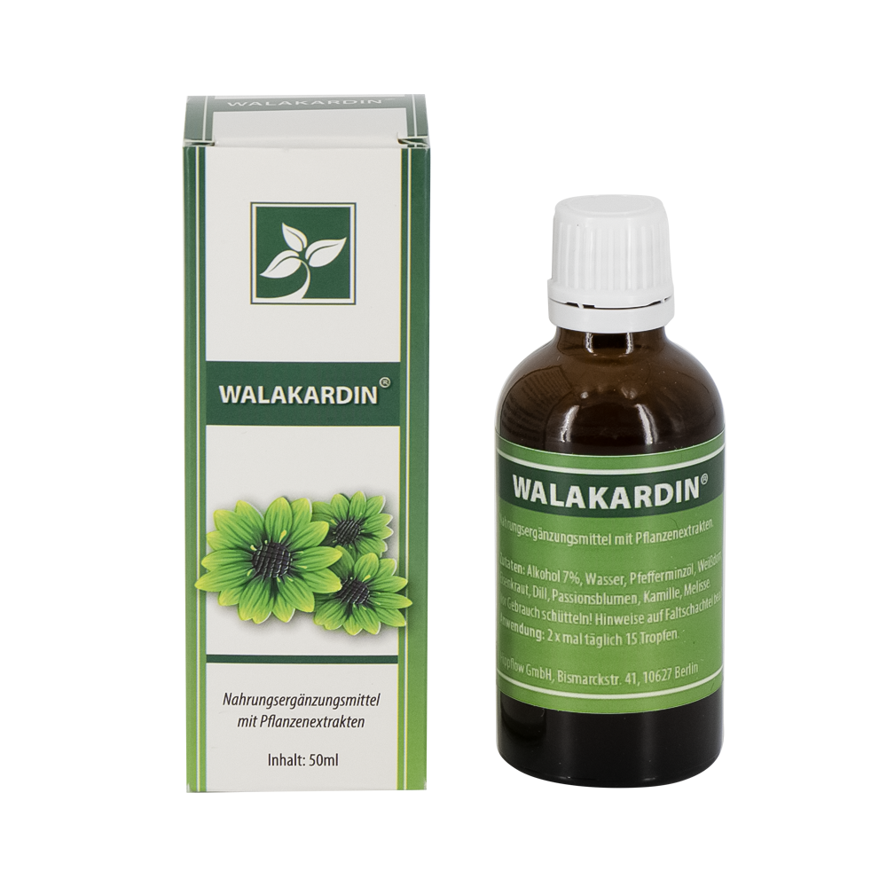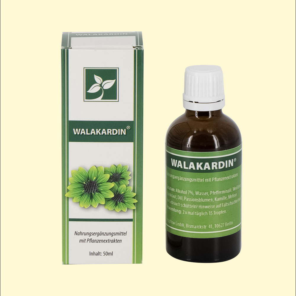 Hippflow Walacardin ist ein hochwertiges Nahrungsergänzungsmittel in flüssiger Form, das aus sorgfältig ausgewählten Pflanzenextrakten hergestellt wird. Mit einem Inhalt von 50 ml unterstützt Walacardin die Gesundheit des Herz-Kreislauf-Systems und trägt zur Förderung eines gesunden Cholesterinspiegels bei. Die Inhaltsstoffe wirken synergistisch, um die allgemeine Vitalität zu steigern und das Wohlbefinden zu fördern. Dieses Produkt eignet sich hervorragend zur Unterstützung eines aktiven Lebensstils und ist ideal für alle, die ihre Herzgesundheit natürlich unterstützen möchten.Anwendung: zweimal täglich vor den Mahlzeiten 15 Tropfen in 200 ml Wasser oder Saft einrühren. Überschreiten Sie nicht die empfohlene Tagesdosis. Nahrungsergänzungsmittel sollten eine ausgewogene und abwechslungsreiche Ernährung nicht ersetzen. Die Flasche vor Gebrauch gut schütteln. Vor Hitze und Sonnenlicht schützen. Außerhalb der Reichweite von kleinen Kindern aufbewahren.