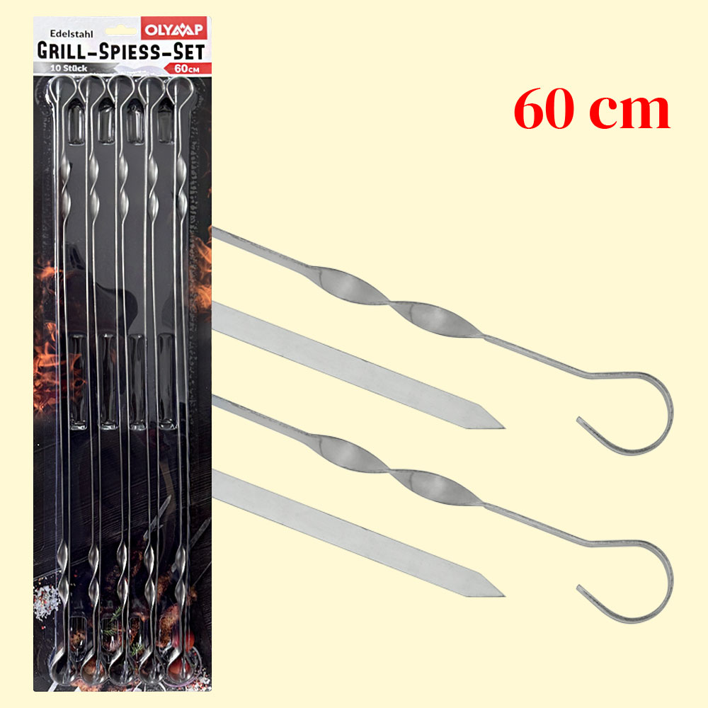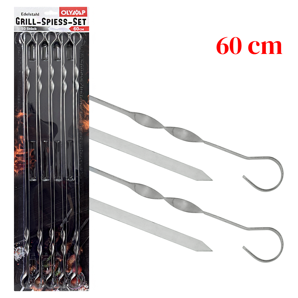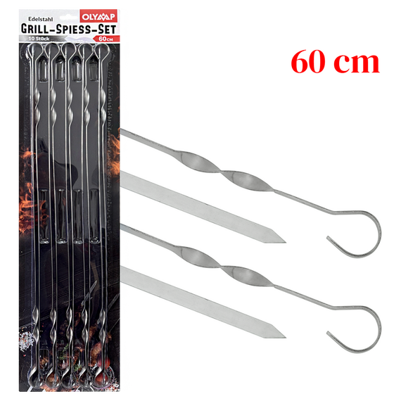 Grillspieß, 10 St. 60 cm, 10 mm breit, Edelstahl 1,5 mm