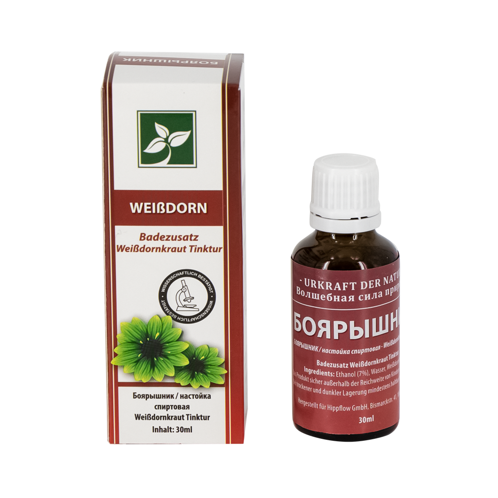 Hippflow Weißdorn Tinktur ist ein hochwertiges Nahrungsergänzungsmittel in flüssiger Form, das reich an Pflanzenextrakten ist. Mit einem Inhalt von 30 ml unterstützt es die Herzgesundheit und trägt zur allgemeinen Vitalität bei. Weißdorn ist bekannt für seine natürliche Fähigkeit, das Herz-Kreislauf-System zu stärken, den Blutfluss zu fördern und die Herzfunktion zu unterstützen. Diese Tinktur bietet eine praktische und effektive Möglichkeit, die positiven Eigenschaften des Weißdorns in Ihre tägliche Ernährung zu integrieren.Inhaltsstoffe: Ethanol 7%, Wasser, Weißdornkraut.