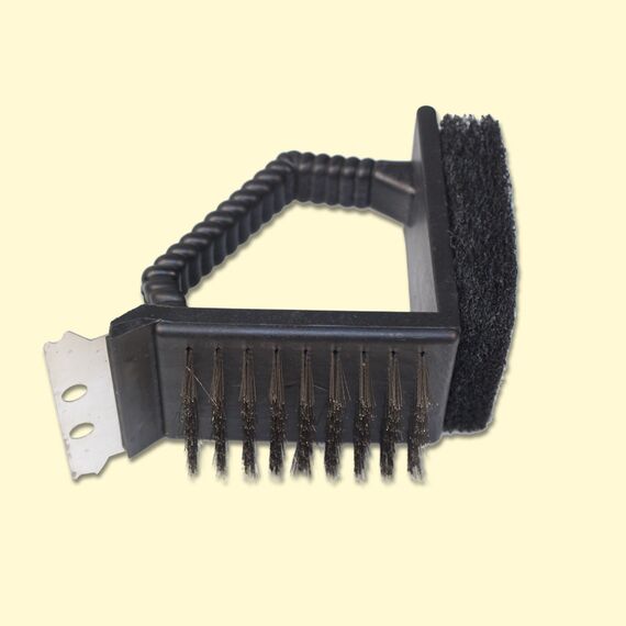 All-in-one Reinigungswerkzeug für den Grill: Reinigungsbürste, Schaber und Grillschwamm mit Griff