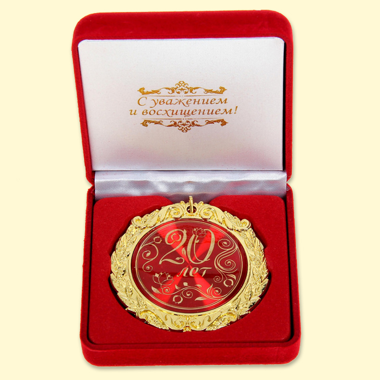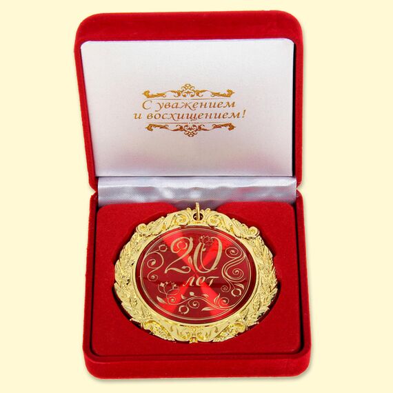 Medaille in Samtbox -20 Jahre, 7 cm