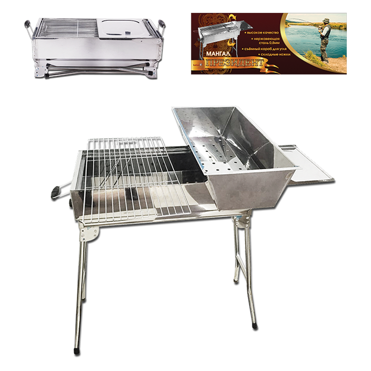 Mangal President mit klappbaren Füßen und Kohlebehälter (HLBT: 76,5x61x30x18,5cm) 0,8 mm, rostfrei