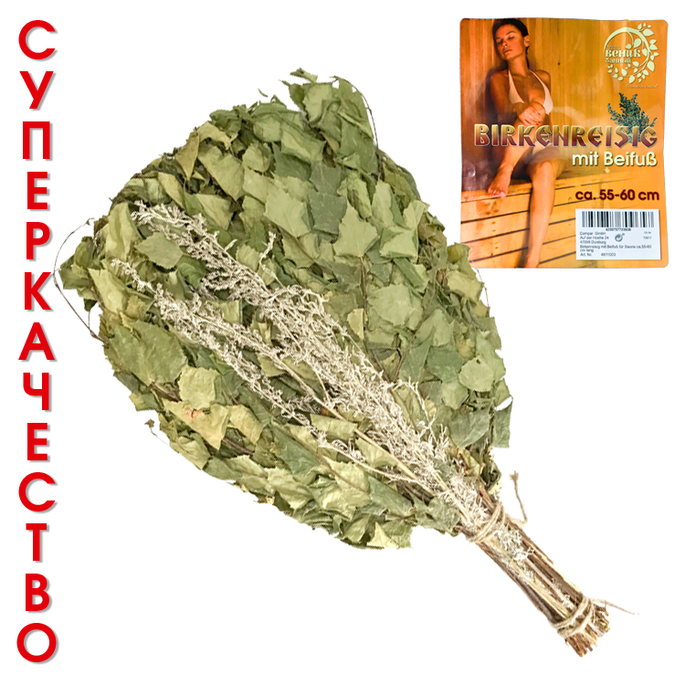 Birkenreisig mit Beifuss für Sauna ca.55-60 cm. lang, SUPERQUALITÄT