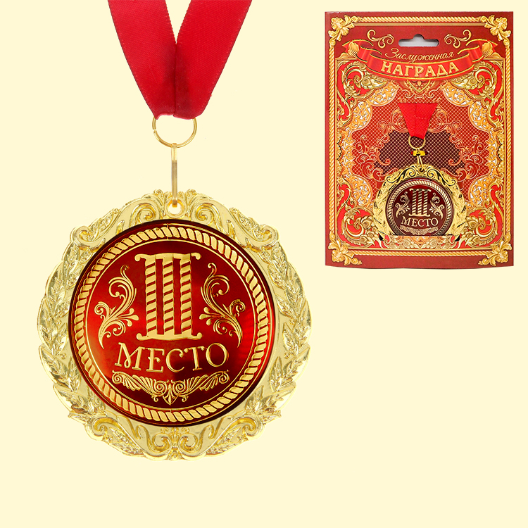 Medaille in einer Geschenkkarte - 3 место, Größe 0,3×7×7 cm, Verp. 0,5×10×16 cm,aus Metall