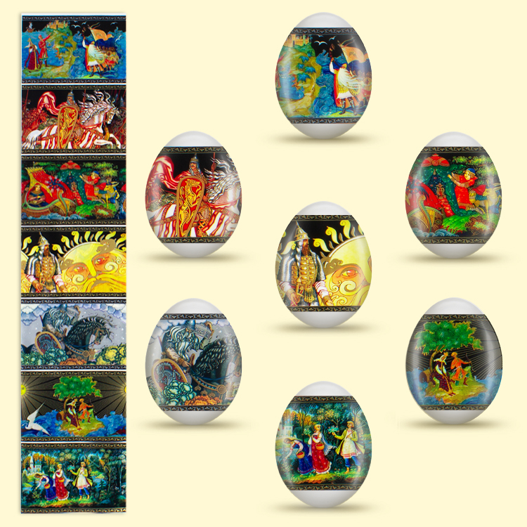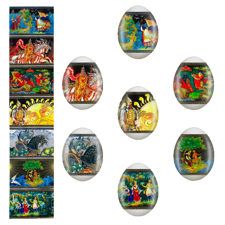 Oster-Dekorbanderolen Märchen. Paleh 7 verschiedene Motive im Set