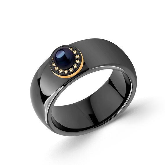 Sokolov Damenring aus Keramik und 585 Rotgold mit Perle und Brillanten