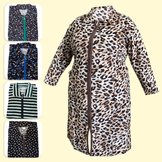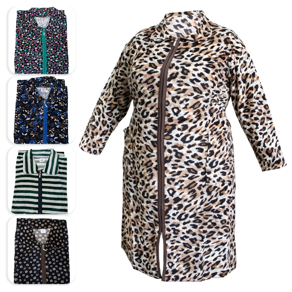 Hausmantel mit Reißverschluss, versch. designs, 100% Baumwolle, 12XL, 13XL, 14XL