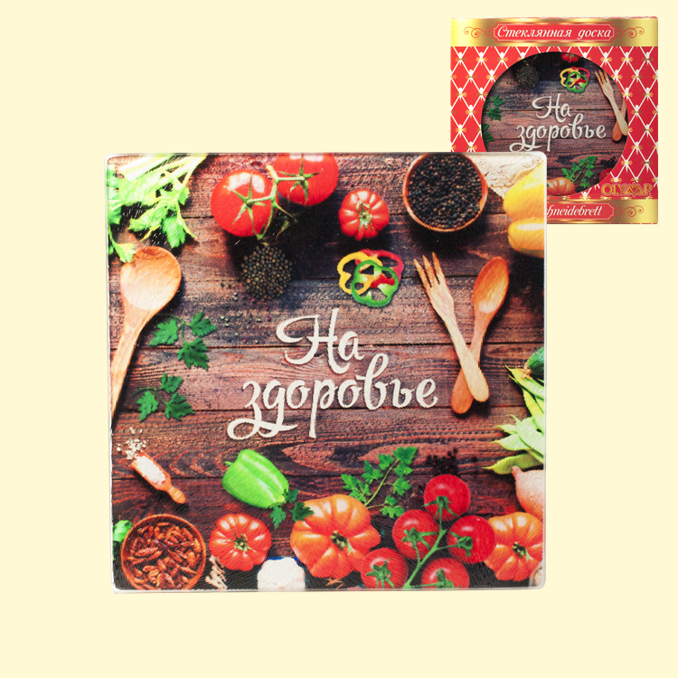 VE 30 Stck. Vorteile der Glasbretter: leicht abzuwaschen, ideal als Schneidebrett, sammeln keine Gerüche auf, hitzebeständig, zerbrechen wirklich nicht, 100% hygienisch, haben Zusatzbeine aus Polymer, originell und bunt gestaltet, kann man als Untersetzer für Heißes benutzen