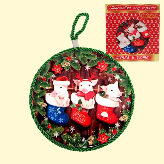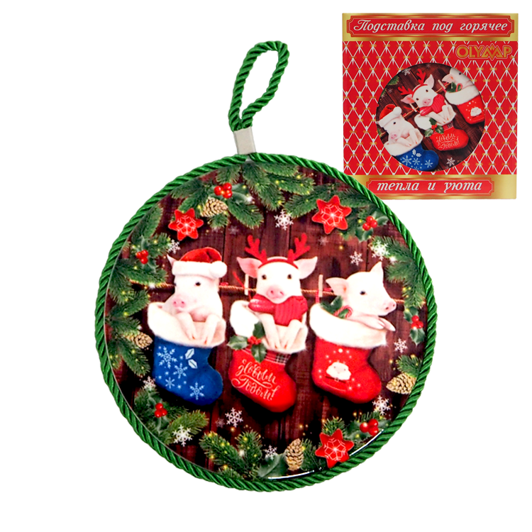 Keramikuntersetzer 3 Schweinchen/Neujahr, Ø 16 cm