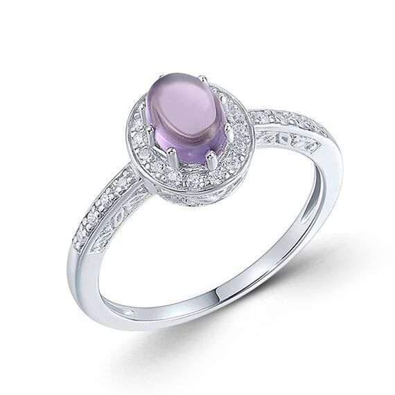 Sokolov Damenring aus 925 Silber mit lila Glaskristall und farblosen Zirkonia