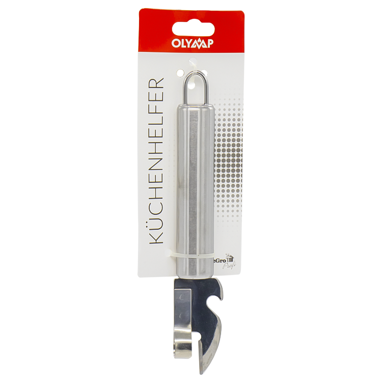 Der Olymp Konservenöffner aus Edelstahl ist ein unverzichtbarer Küchenhelfer, der Ihnen das Öffnen von Konservendosen mühelos erleichtert. Hergestellt aus hochwertigem Edelstahl, bietet dieser Konservenöffner hohe Langlebigkeit und Stabilität. Mit seiner ergonomischen Handhabung liegt er angenehm in der Hand und ermöglicht ein einfaches und sicheres Öffnen von Dosen ohne großen Kraftaufwand. Ideal für den täglichen Gebrauch in der Küche oder beim Camping, ist dieser Konservenöffner ein praktisches und elegantes Zubehör für jeden Haushalt.Eigenschaften: