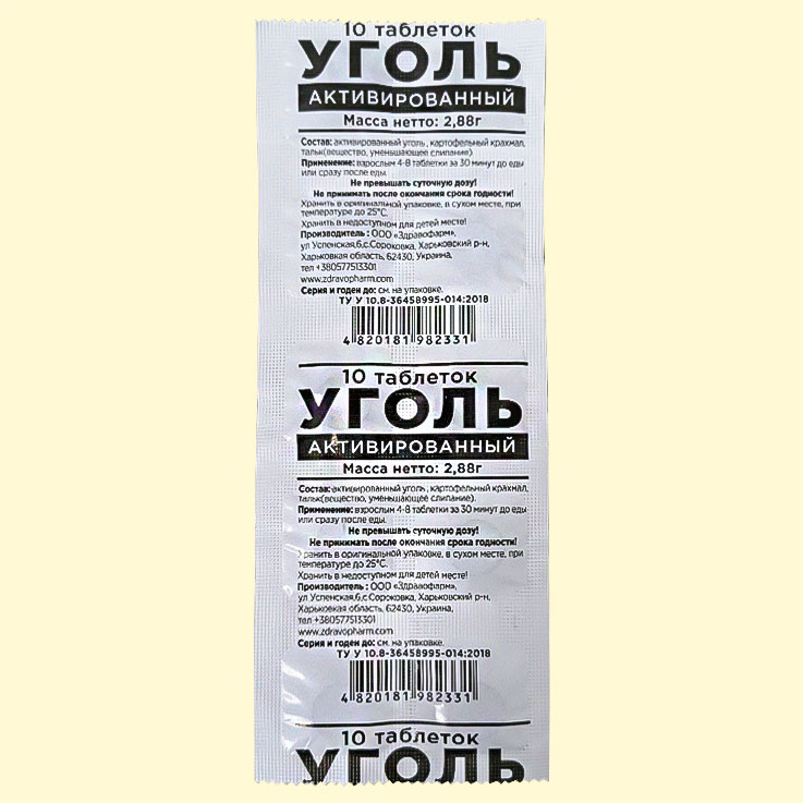 Aktivkohle wird als ganze Tablette oder nach vorherigem Mahlen in Form einer wässrigen Suspension eine Stunde vor den Mahlzeiten und der Einnahme von Medikamenten eingenommen.