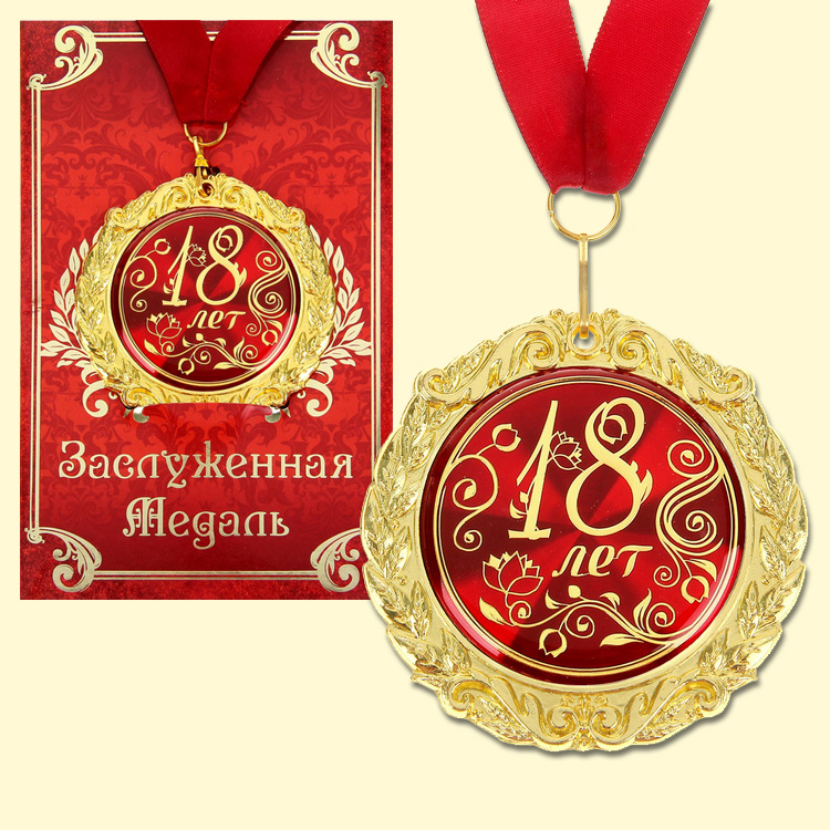 Medaille in Geschenkkarte - 18 Jahre, Größe 0,3×7×7 cm, Verp. 0,5×10×16 cm, aus Metall