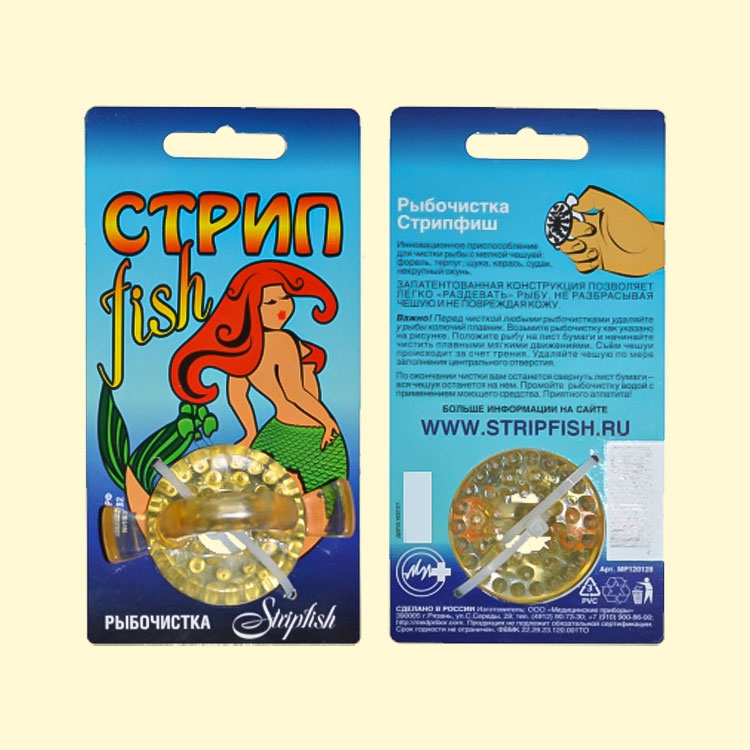 Bei Fischen mit großen Schuppen sollten die ersten Schuppen mit den Zähnen des Fischputzers aufgenommen werden. Die Schuppen lösen sich einfach ab und streuen nicht in alle Richtungen. Sie müssen keine plötzlichen Bewegungen machen oder viel Kraft aufwenden, selbst die zarten Hände einer Frau kommen damit problemlos zurecht, wie Sie im Video sehen können. Wenn Sie einen Fisch mit feinen Schuppen haben, beginnen Sie einfach mit dem Bürsten und fahren Sie fort, bis der Fisch vollständig sauber ist, wie Sie es normalerweise tun würden. Wenn das Mittelloch des Fischputzers voll mit Schuppen ist, können Sie diese abspülen oder einfach mit dem Finger entfernen. Wenn Sie Fisch mit dem STRIPFISH Fischschäler reinigen, beschädigen Sie weder die Haut des Fisches noch Ihre Hände nicht. Ihre Küche bleibt sauber. Sie bekommen mehr Zeit für angenehmere Dinge als Putzen)))
